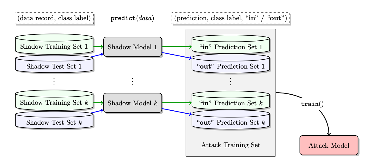 建立Shadow Dataset ,储存每个影子模型的训练集和测试集,以及对应样本在模型上的预测结果